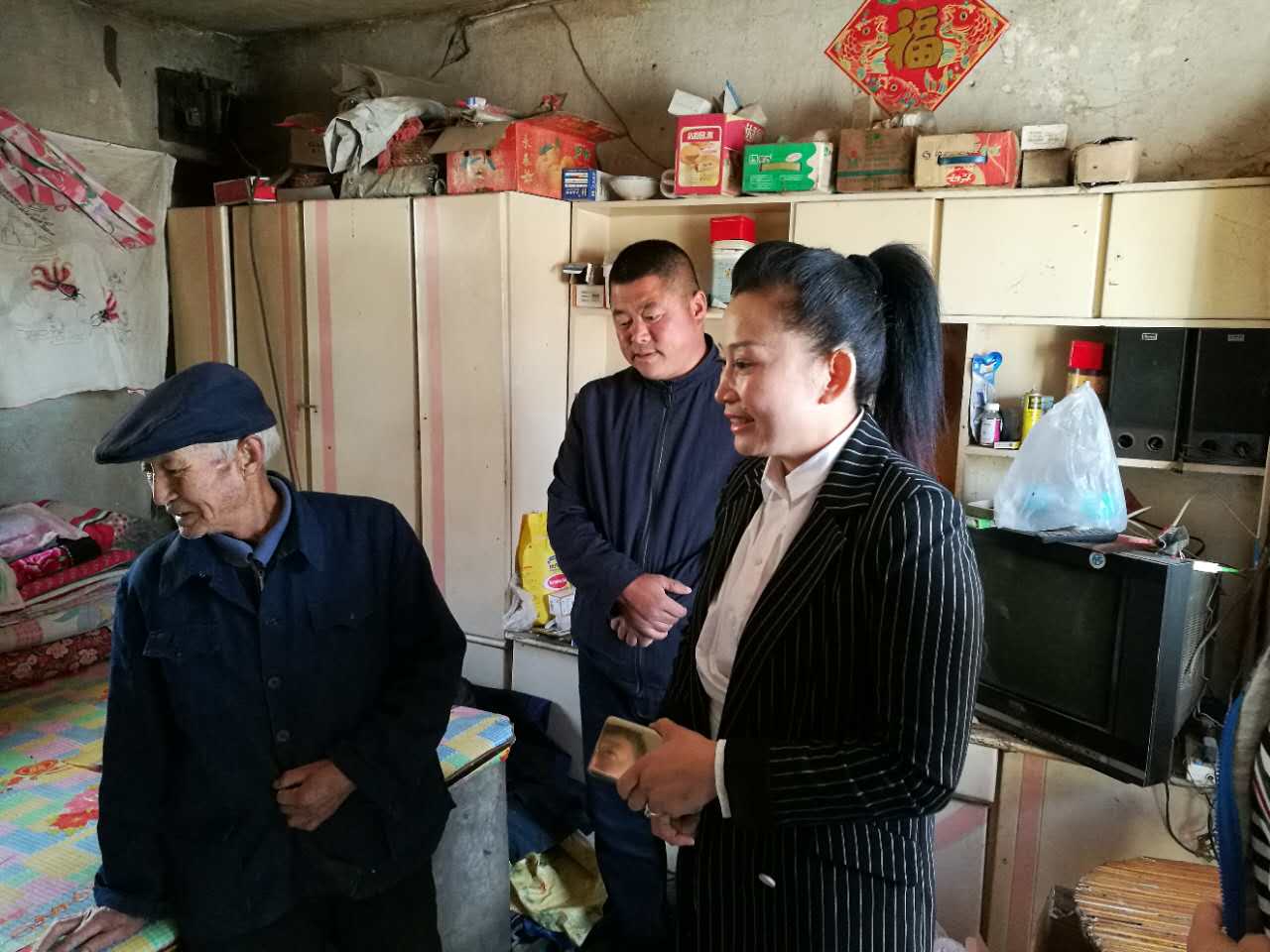 在贫困户赵凤海家里,市经合局向“鑫之行”爱心协会详细介绍了他的生活情况,赵凤海是独居,今年73岁,患有高血压、冠心病,丧失劳动能力。此次走访为老人送来了2袋大米、2桶豆油、2箱月饼和旧衣物,并鼓励老人坚定脱贫信心,乐观面对生活。